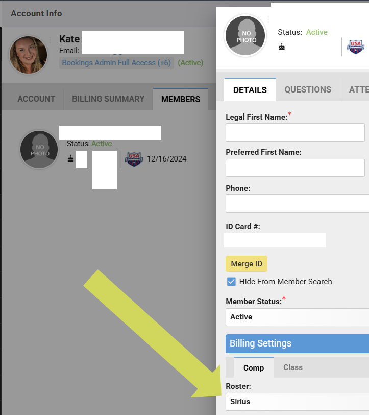 While logged into SportsEngine Motion, go to "My Account" > Account Info > Members > and click on your athlete's name. Scroll down to "roster".