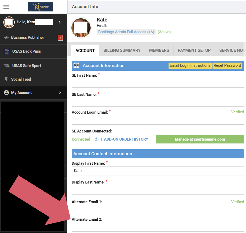 1. While logged into SportsEngine Motion, go to "My Account" > Account Info > and scroll down to Account Contact Information.